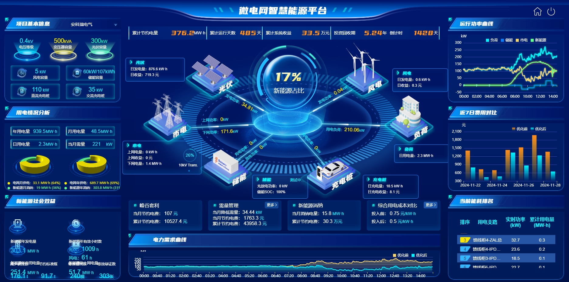 能耗分析功能包括了能耗概況、能耗同比、能耗環(huán)比...